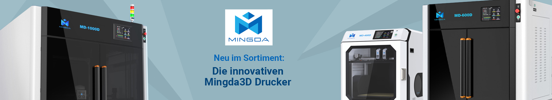 Mingda 3D Drucker sind für Ihre Zuverlässigkeit, hohe Druckqualität und ein sehr gutes Preis-Leistungsverhältnis bekannt. Vom Mingda MD-400D, einen unabhängiger 3D-Drucker mit zwei Extrudern, mit dem Sie feinere und komplexere Prototypen drucken und Ihre Produktivität um ein Vielfaches steigern können, bis hin zu den Mingda MD 1000 Modellen – demMingda MD-1000 Pro und dem Mingda MD-1000D – mit sehr großem Bauraum bieten wir noch andere Modelle dieses Herstellers an. Auch die Mingda MD-600 Modelle, wie der MD-600D sind ein einfach zu bedienender Großformat 3D-Drucker, die speziell für industrielle Anwendungen unter Verwendung von Materialien in technischer Qualität entwickelt wurden.