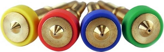 Die unterschiedlichen Düsengrößen erkennt man sofort an den verschiedenen Farben der Silikonsocke. Zusätzlich ist in jeder Revo-Düse der Düsendurchmesser gut lesbar eingraviert.