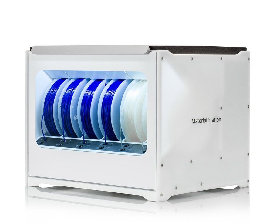 - Kontinuierliches Drucken: Sensoren erkennen sobald ein Material zu Ende geht und laden automatisch das gleichwertige Material aus der Material Station nach.